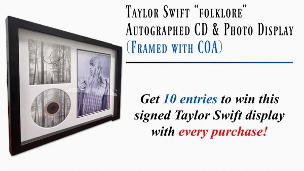 For every purchase, you’ll get 10 entries to win this framed folklore signed collector’s display. Featuring Taylor Swift’s authentic autograph, original CD, and certificate of authenticity — a must-have for any fan.