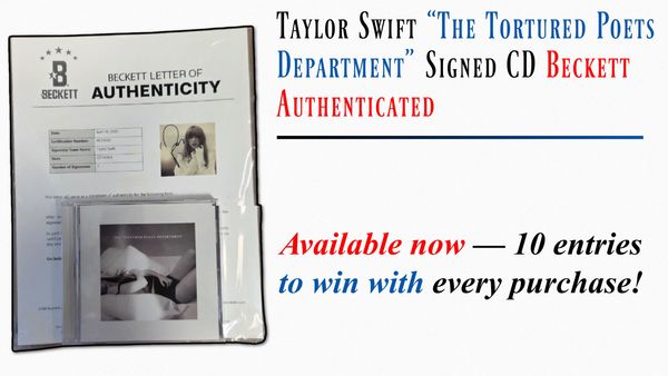 Own a piece of Taylor Swift’s latest era with this Tortured Poets Department CD, hand-signed by Taylor and certified authentic by Beckett. Professionally authenticated and ready to display, this rare collectible is perfect for any Swiftie.